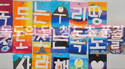 독도의 달을 맞아 청도초 3학년 2반에서 한 활동들을 담았습니다. 먼저 독도는 우리 땅 노래 가사에 대해 배워보고 5절까지 외워 부르기를 했습니다. 다음으론 독도 플래시몹 댄스를 배웠는데 자유분방한 몸놀림이 인상적이었습니다. 자기들은 재미있었다고 합니다^^ 독도 손글씨쓰기를 위해 그 전에 배워온 오일파스텔을 활용해 독도를 사랑하는 마음을 표현했고, 독도 메타버스 접속을 위해 고난의 다운로드, 설치, 업데이트 등등을 힘겹게 이겨내고 독도 메타버스에 접속해서 출석체크를 했습니다. 재미있어서 집에서도 해본다고 합니다. 마지막으로 독도수비대가 되어 도망치고 잡는 '코코게임'을 하며 즐겁게 독도 사랑을 배웠습니다.
